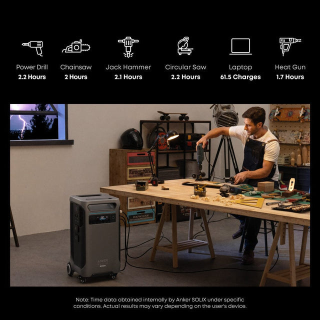 • 2 x Anker F3800 Plus Solar Generators (6,000W AC each / 12,000W total, 240V output with Double Power Hub)