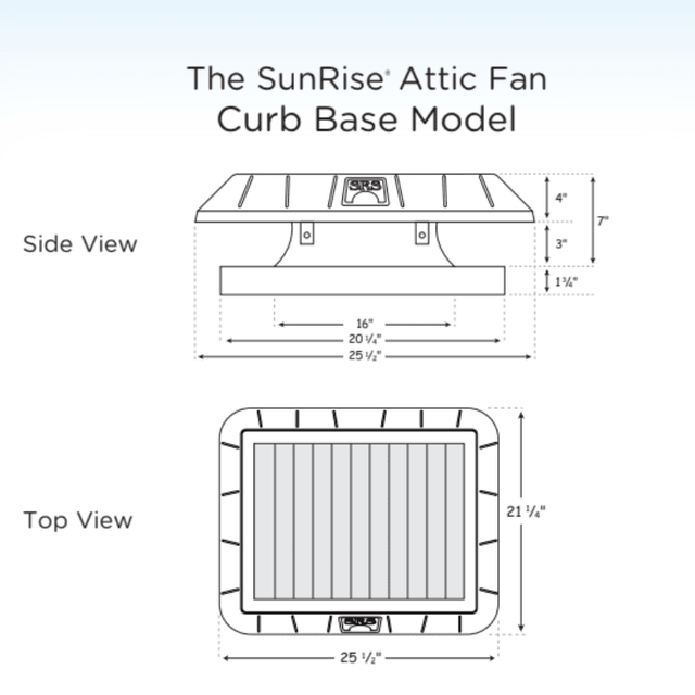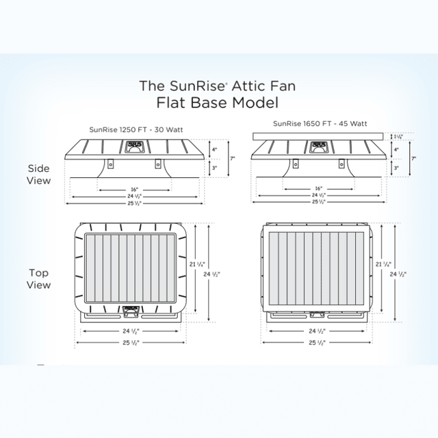 SunRise Solar Attic Fan with Integrated Solar Panel | 30W–45W Options | Flat or Curb Base | Up to 2,800 sq/ft Cooling