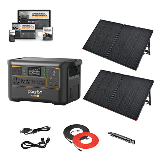 These kits include all of the cables, connectors, adapters, solar panels, needed to get up and running with quiet, free reliable solar power!