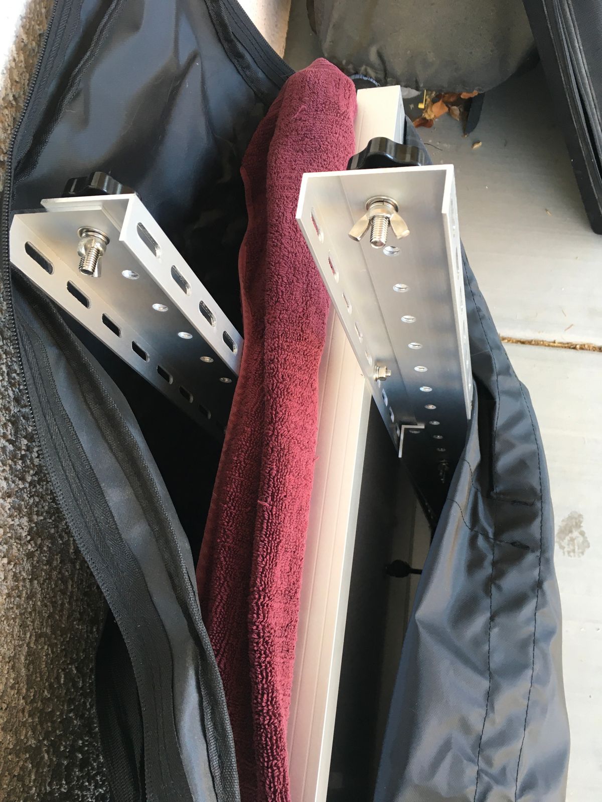 Turn any solar panel into a freestanding suitcase with our 28" solar panel stands. You'll need one of these stands for each panel.