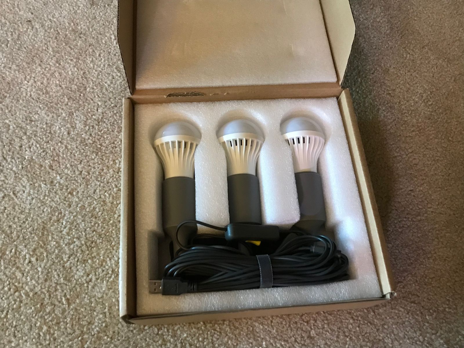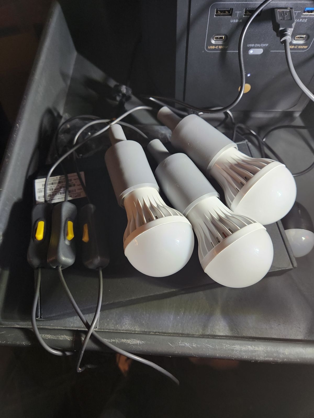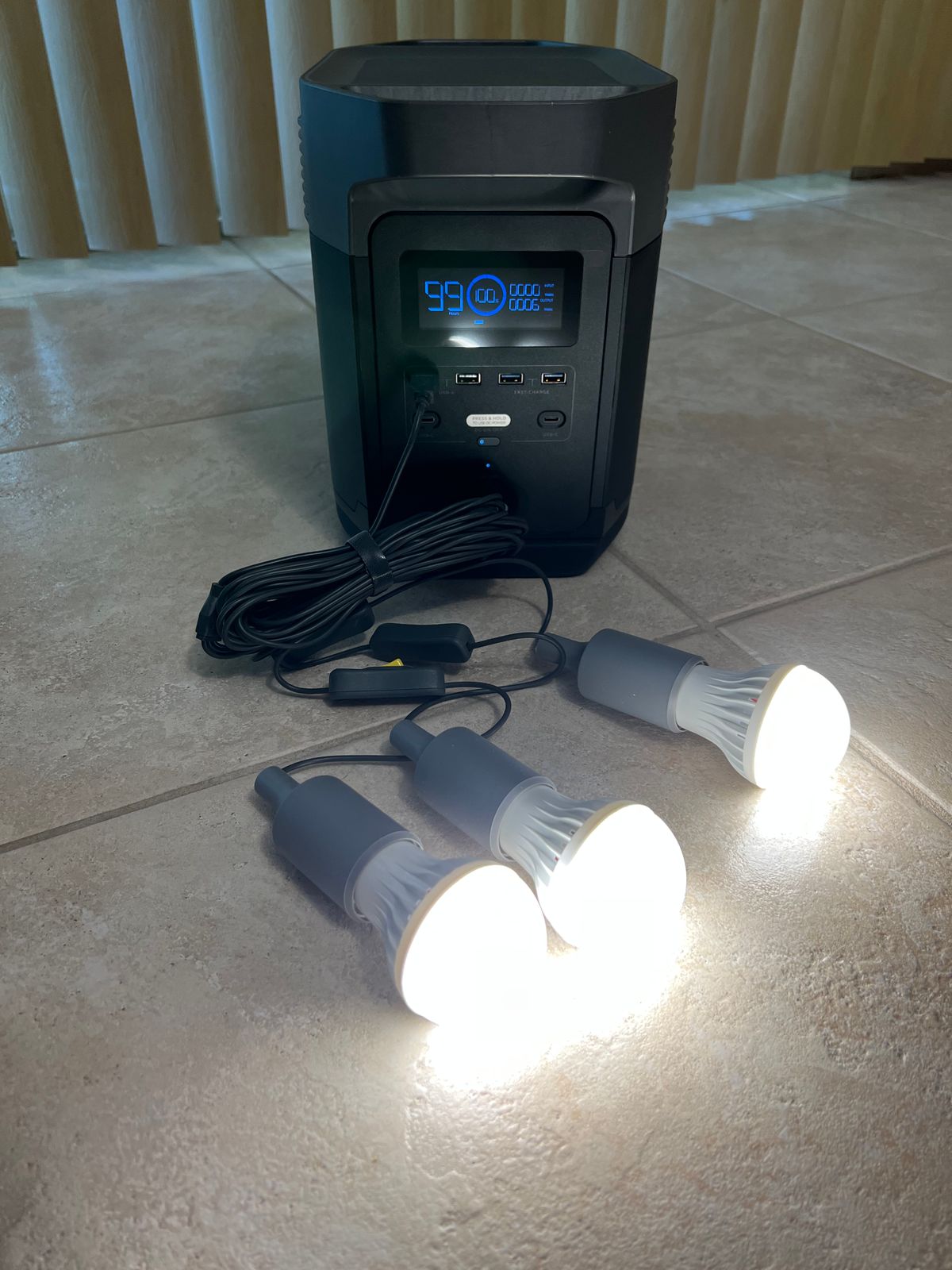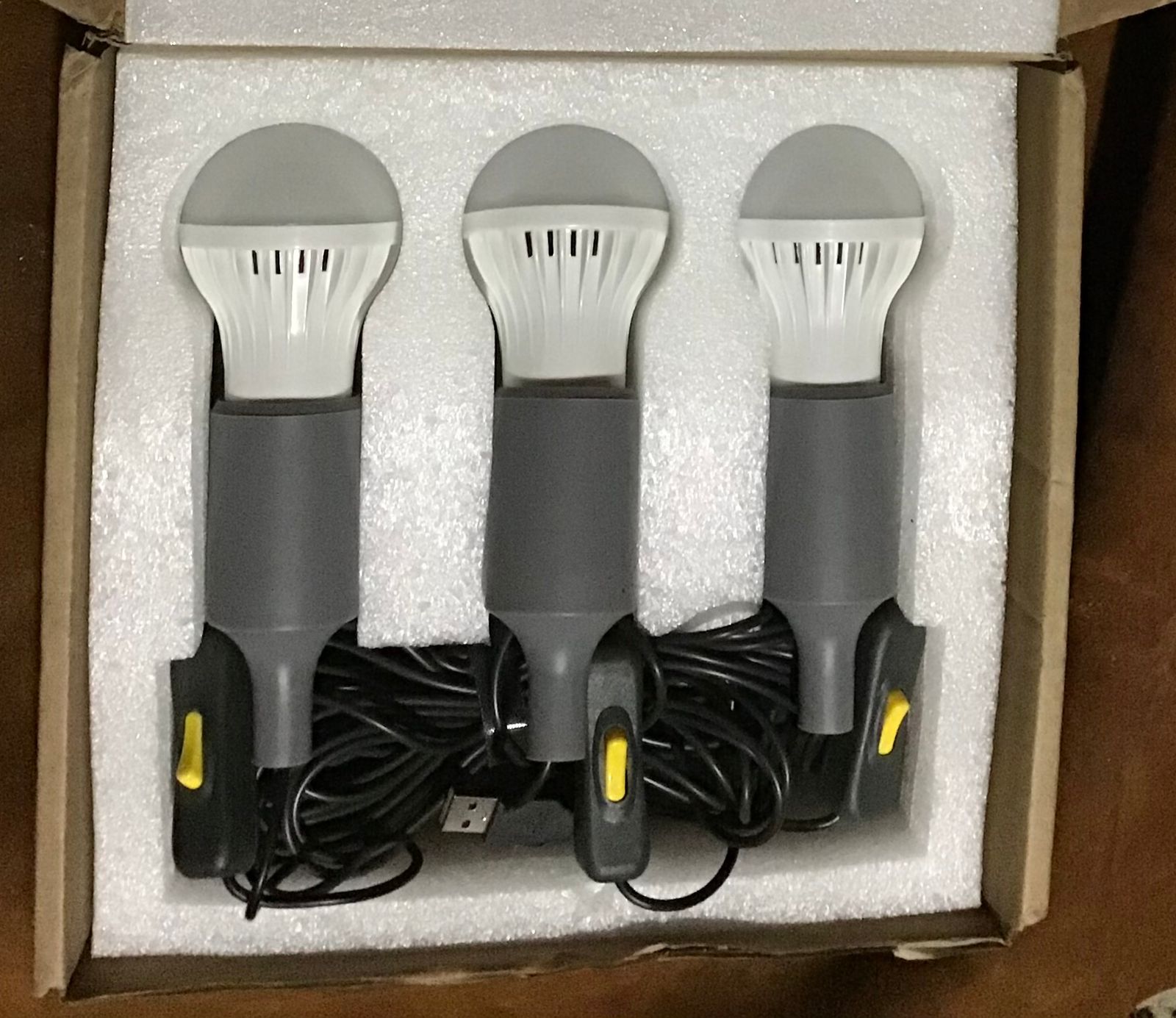 This energy-efficient 15-foot set of lights runs three MASSIVE LED bulbs, each with their own on/off switch... from a single USB plug! Perfect for use with your generator because you get bright light, but without a significant drain on your unit.