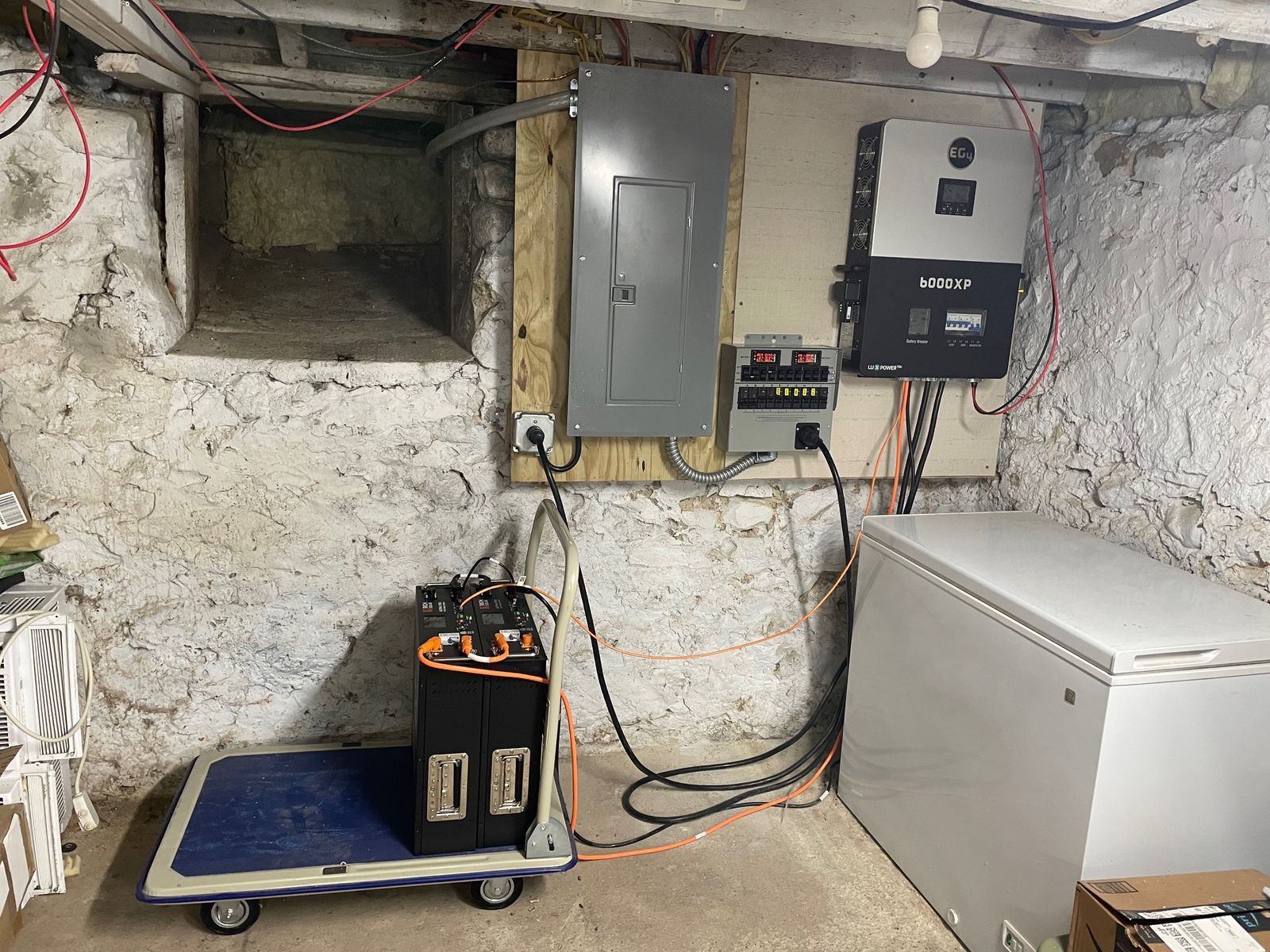 This is the first stage of my three planned purches. I got the eg4 inverter 6000 XP base kit with six 400 watt panels and the two server rack batteries. Did a little online research and followed the instructions and it got set up without any issues. Right now I'm just running it in my garage on a single outlet and have been running dual 750 watt water distillers with it. Once I get the second inverter and a bunch more panels and batteries, I plan on attaching it to my subpanel in my house that has my lights and outlets and appliances on it. Then I'll get a soft start for my AC and blower and run it on my main panel.
