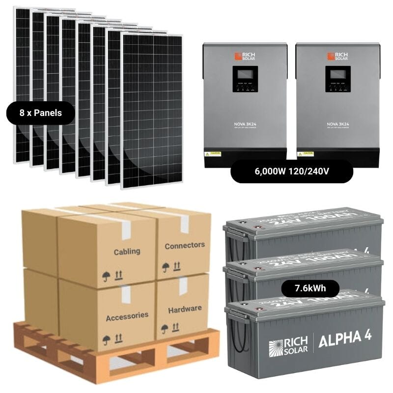 1.6kW Off-Grid Solar Kit - Dual Rich Solar 3K Inverters - 5-7kWh Lithium Battery [CORE MAX]