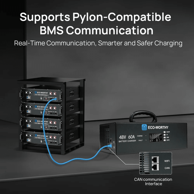 Smart CAN Communication: Enables intelligent charging with ECO-WORTHY 48V 100Ah lithium batteries.