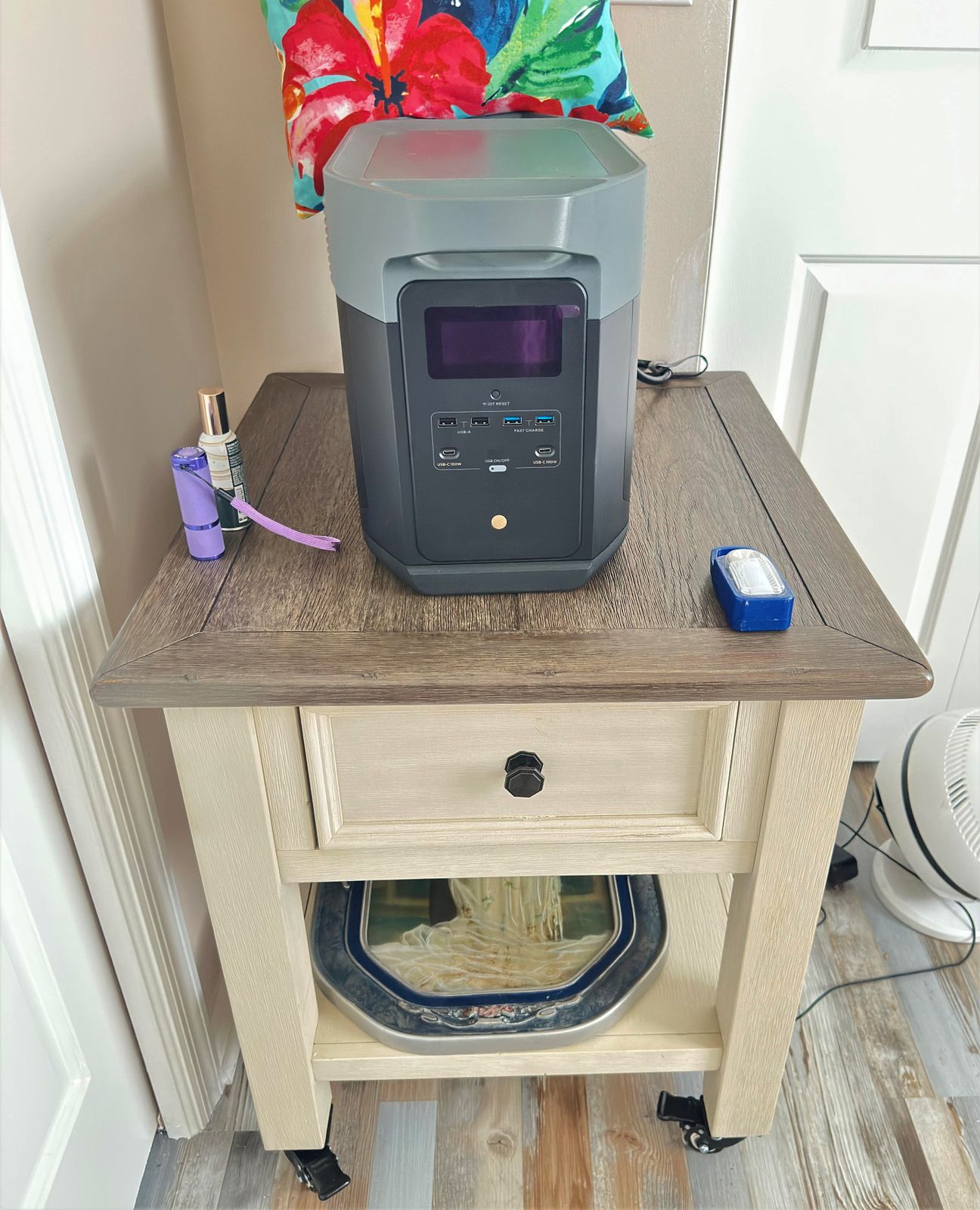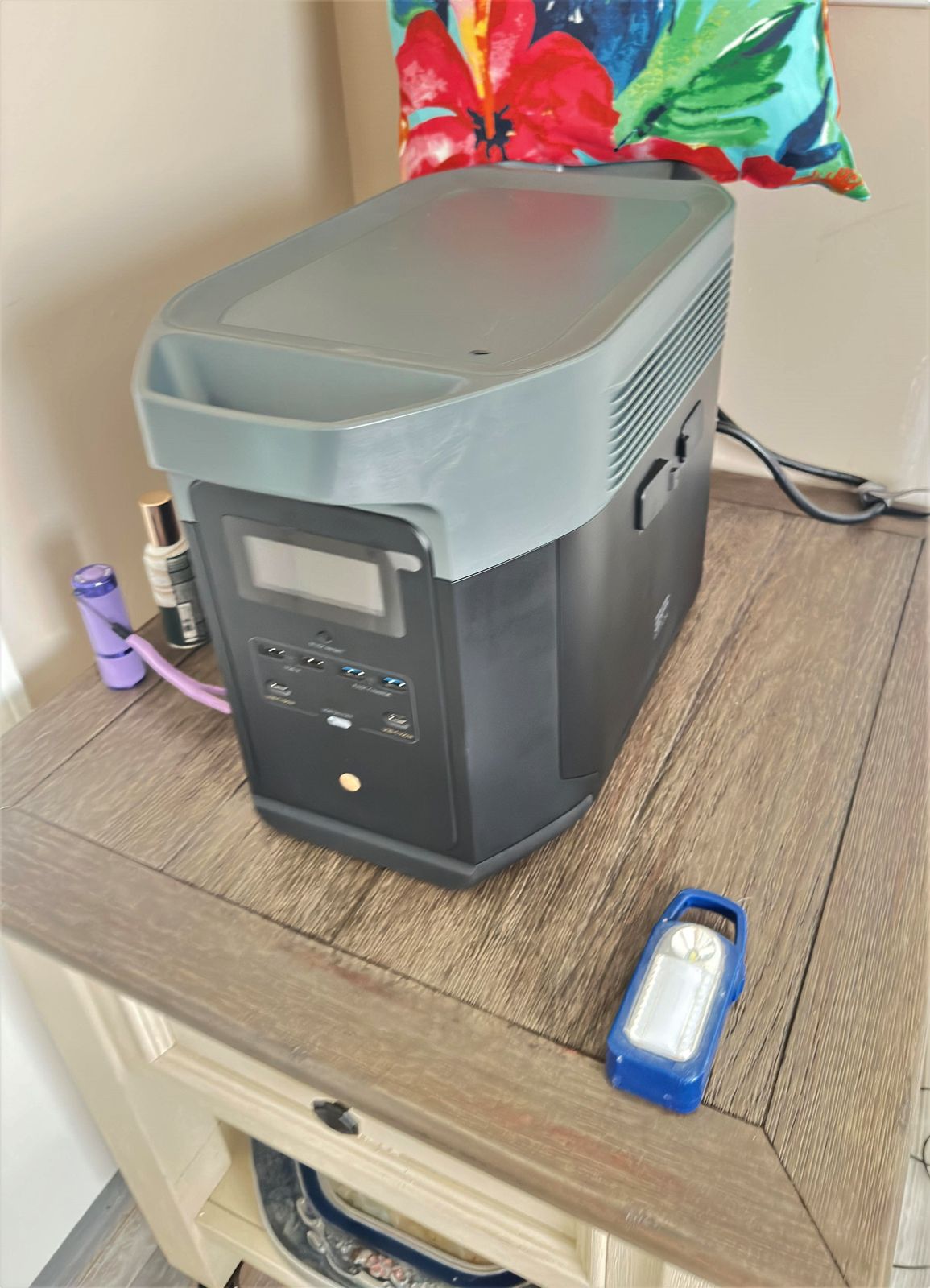 I have my unit charged, bought a nice table for it, added caster wheels and hope we don't have any hurricanes! We do experience a lot of outages, so this generator will come in quite handy! All parts, except the solar panels, fit nicely in the table drawer so I don't lose any parts!