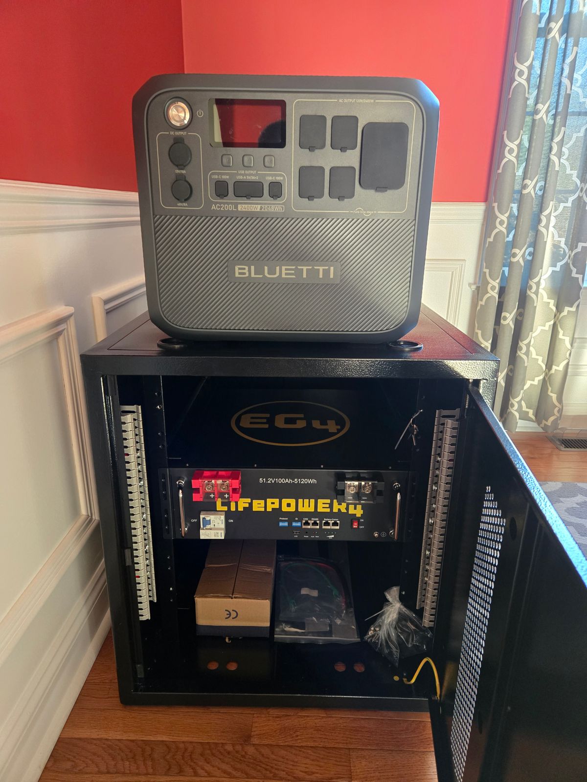 This is the first stage of my three planned purches. I got the eg4 inverter 6000 XP base kit with six 400 watt panels and the two server rack batteries. Did a little online research and followed the instructions and it got set up without any issues. Right now I'm just running it in my garage on a single outlet and have been running dual 750 watt water distillers with it. Once I get the second inverter and a bunch more panels and batteries, I plan on attaching it to my subpanel in my house that has my lights and outlets and appliances on it. Then I'll get a soft start for my AC and blower and run it on my main panel.