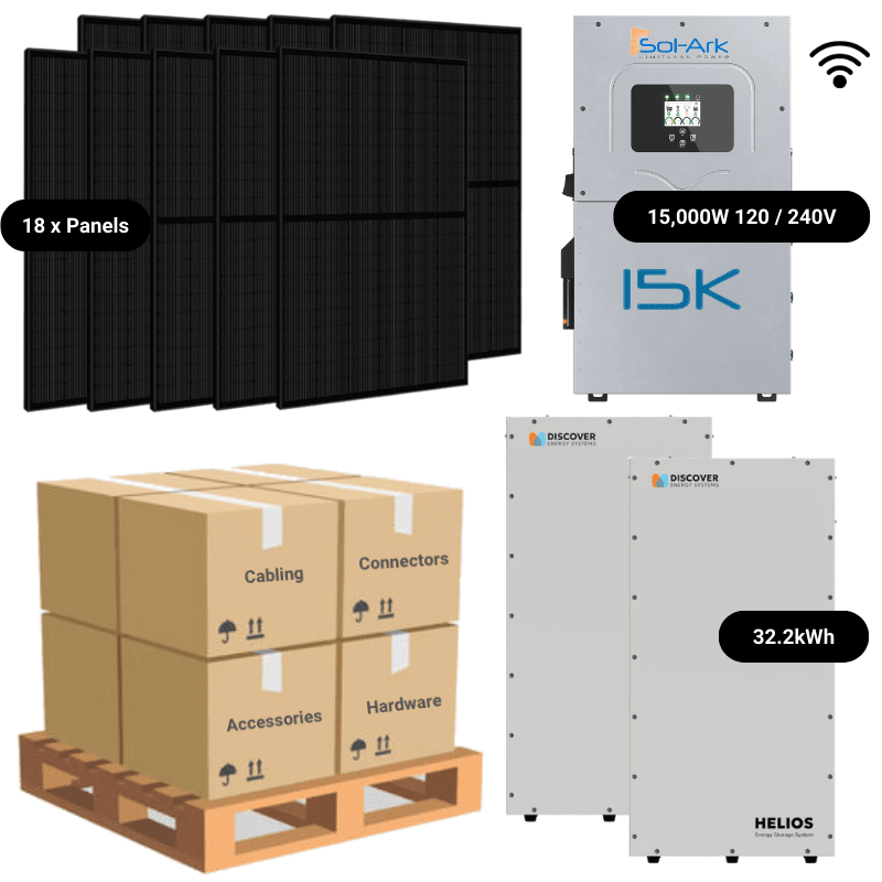 7.3kW Complete Solar Kit - Sol-Ark 15K Inverter - 20-32kWh Lithium Battery - HPK PLUS - ShopSolar: Complete Solar Kits + Lifetime Customer Support7.92kW Complete Solar Kit - Sol-Ark 15K Inverter - 20-32kWh Lithium Battery [ELITE PLUS]