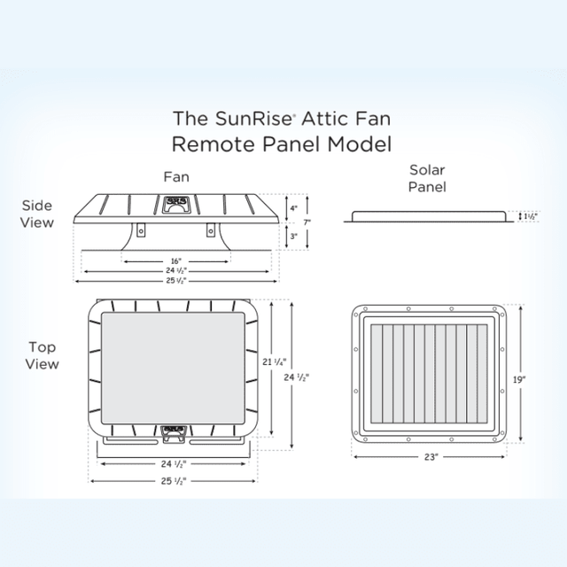 Enhance your attic ventilation with the SunRise Solar Remote Panel Attic Fan—a durable, solar-powered solution built for energy savings and lasting performance. Choose your ideal setup based on your roof type and square footage needs.