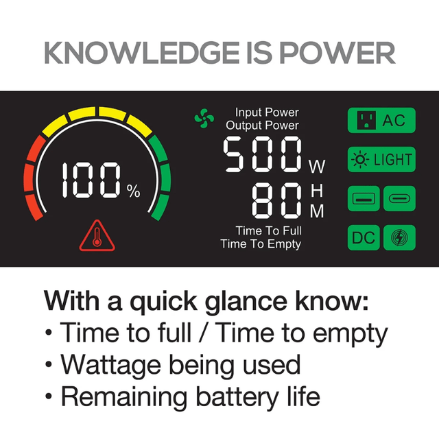 • 500W Continuous / 1,000W Surge Power – Ideal for charging laptops, phones, small appliances & CPAPs.
